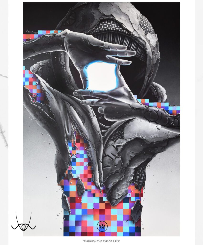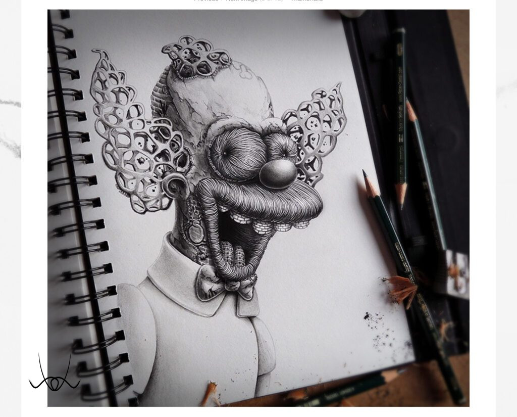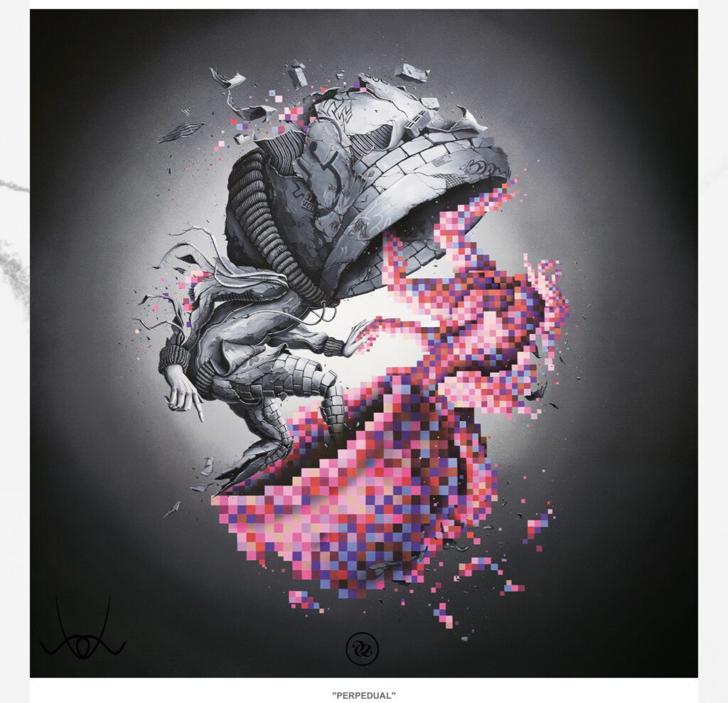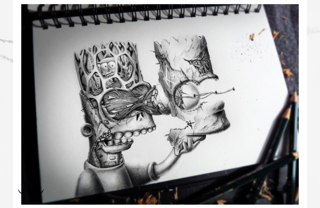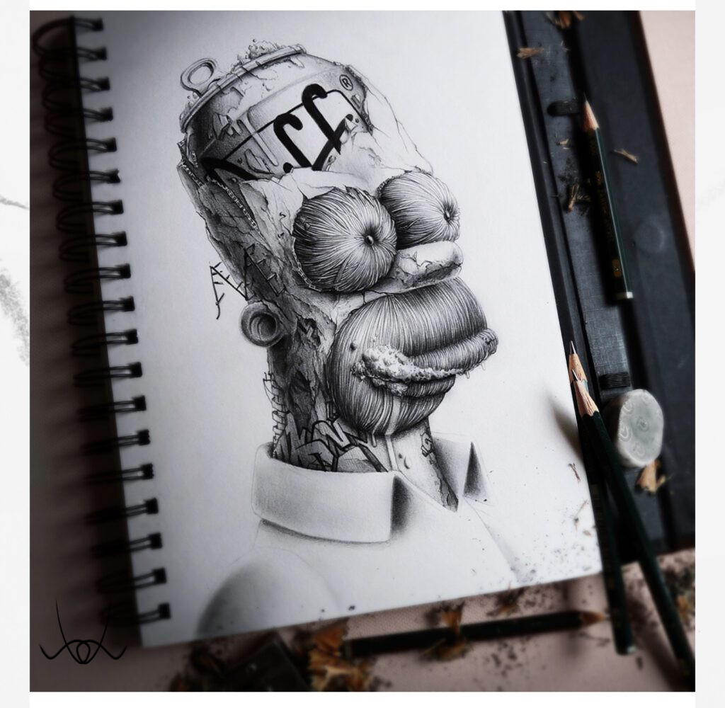 Kreációinak döntő többsége a képzeletének eredménye. Egy-egy kisebb rajza 6–10 óra alatt készül el, míg a nagyobb volumenű műalkotások akár 40–60 órát is igényelnek. Precíz, részletgazdag munkáit fiatal korában a hiphop kultúra mellett a graffiti világa határozta meg, míg később Dalí, Banksy, Klimt, Magritte, Escher és sok más művész inspirálta, akiknek hatása jól megfigyelhető rajzain.