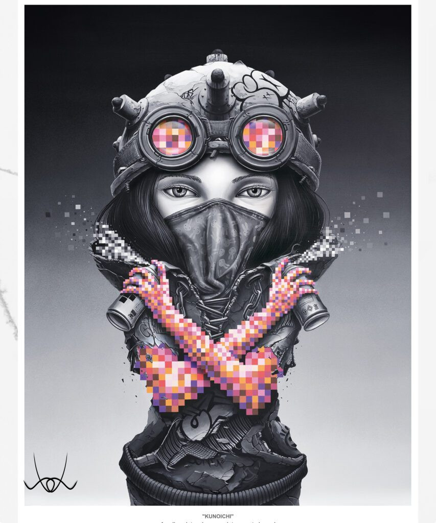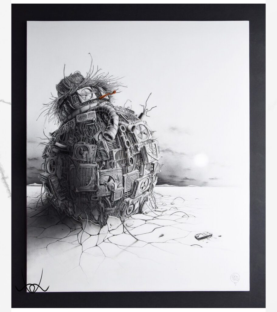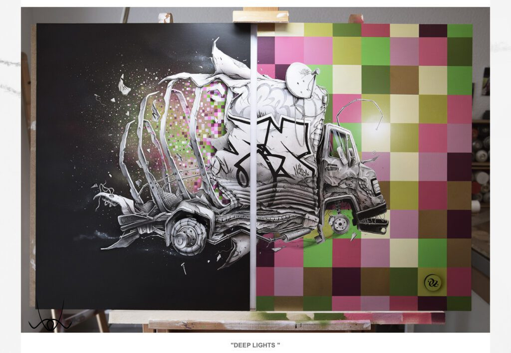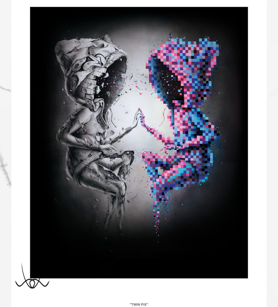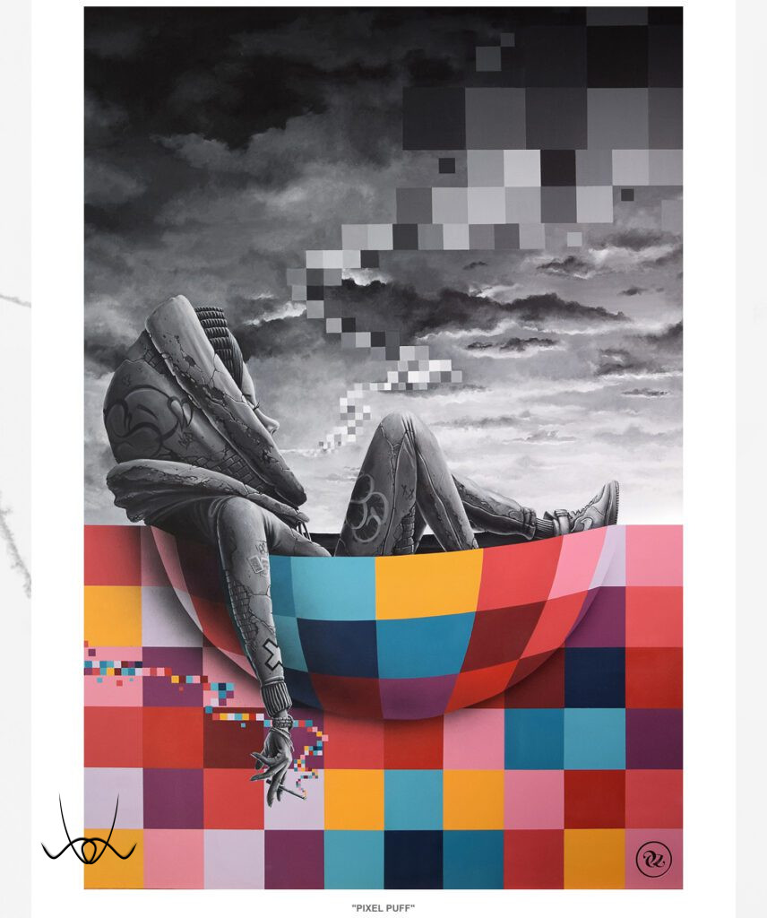 Kreációinak döntő többsége a képzeletének eredménye. Egy-egy kisebb rajza 6–10 óra alatt készül el, míg a nagyobb volumenű műalkotások akár 40–60 órát is igényelnek. Precíz, részletgazdag munkáit fiatal korában a hiphop kultúra mellett a graffiti világa határozta meg, míg később Dalí, Banksy, Klimt, Magritte, Escher és sok más művész inspirálta, akiknek hatása jól megfigyelhető rajzain.