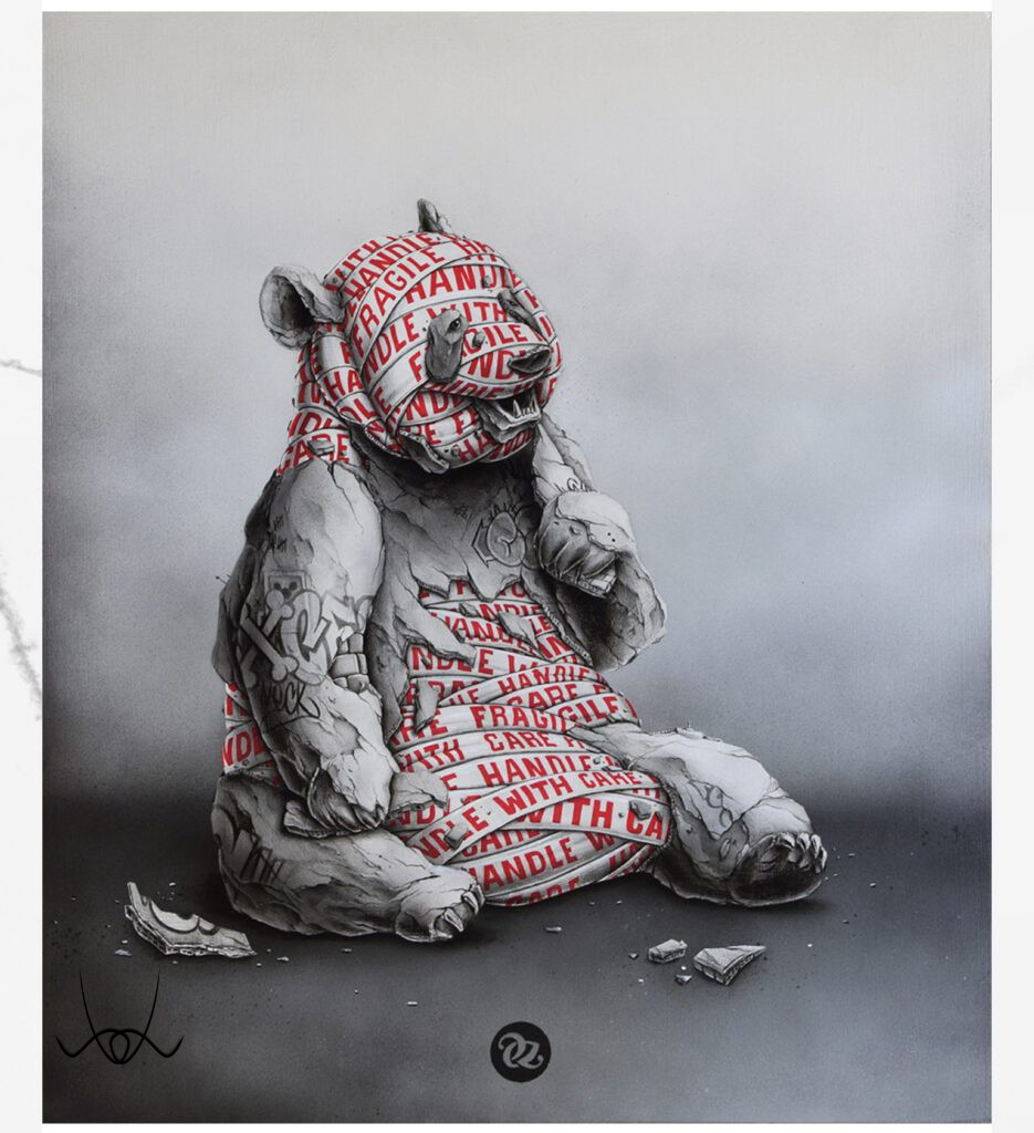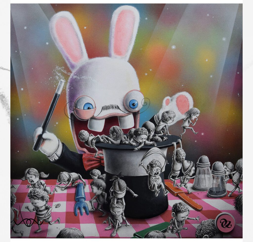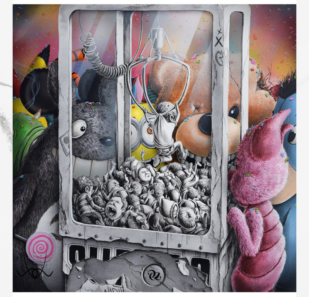Maradva továbbra is a gyermeki léleknél, egy nagyon egyszerű üzenetet közvetít Pez: azt, amit mi, felnőttek, elveszünk a gyerekektől. Érdemes figyelmet szentelni a rajzok aprólékosságának és vegyes technikájának (fa alapon festék, és spray festék).