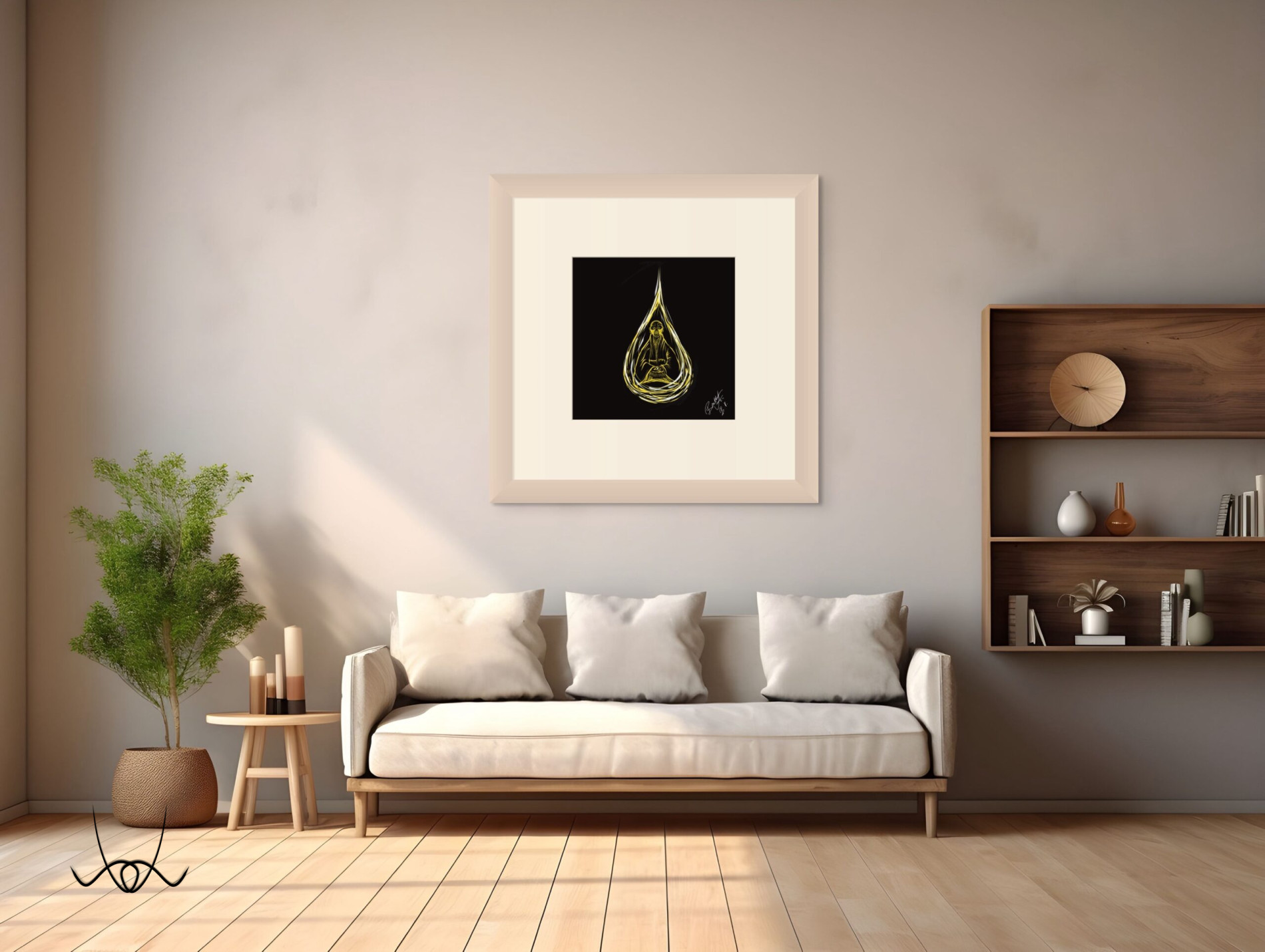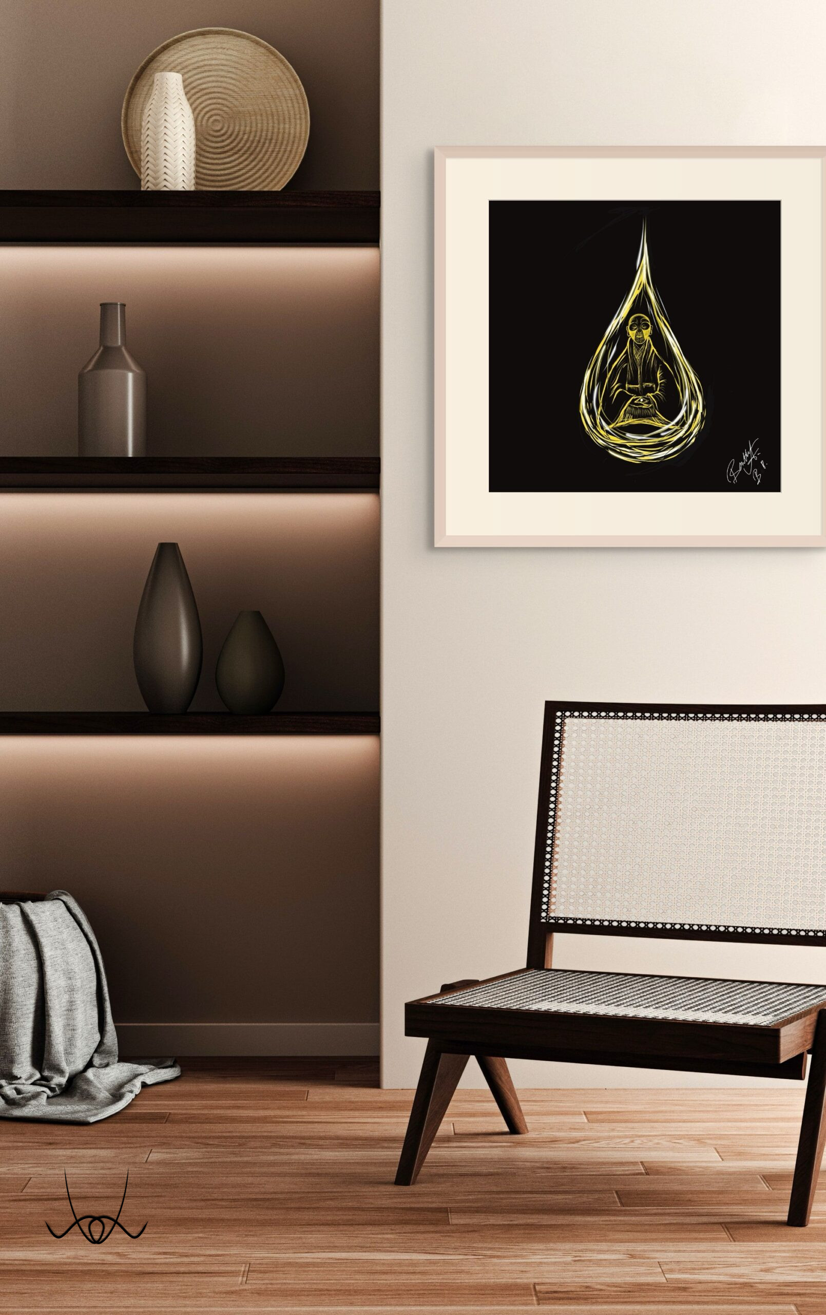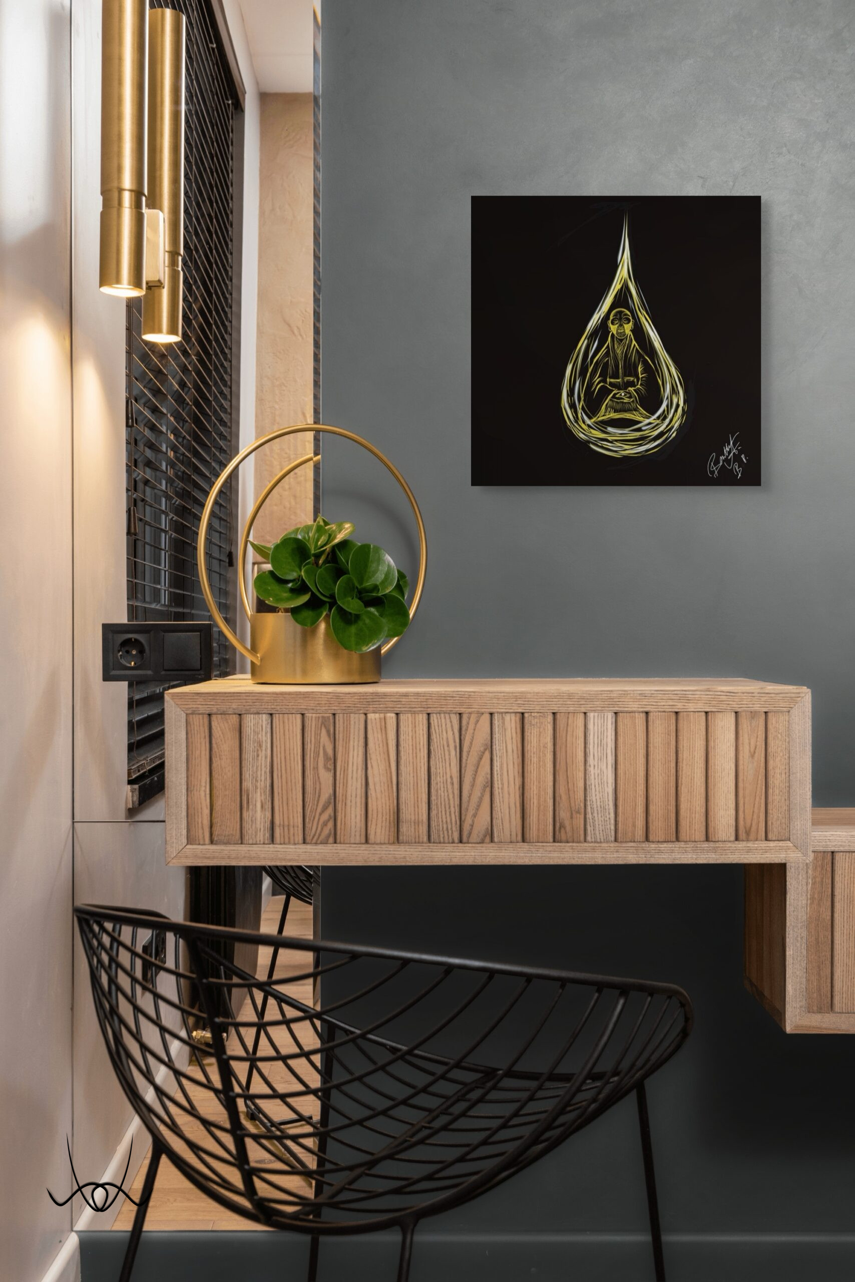 Apám halála után hosszú éveket töltöttem gyászban. A gyógyulásom egyik elengedhetetlen része lett a meditáció, valamint az alkotás által elért flow-állapot. Több mint húsz éve gyakorlom a csend művészetét – ez a kép pedig ennek az elmélyülésnek egy fontos állomását szimbolizálja.